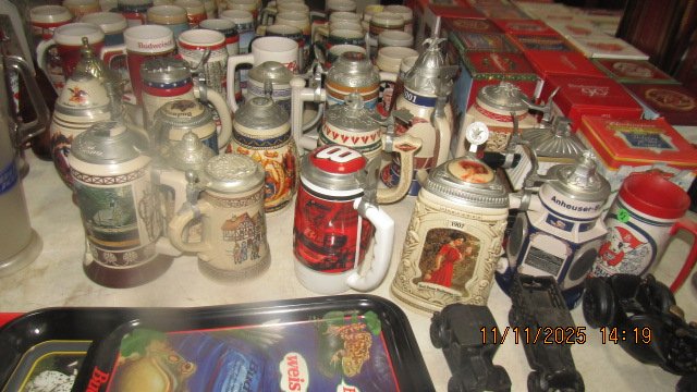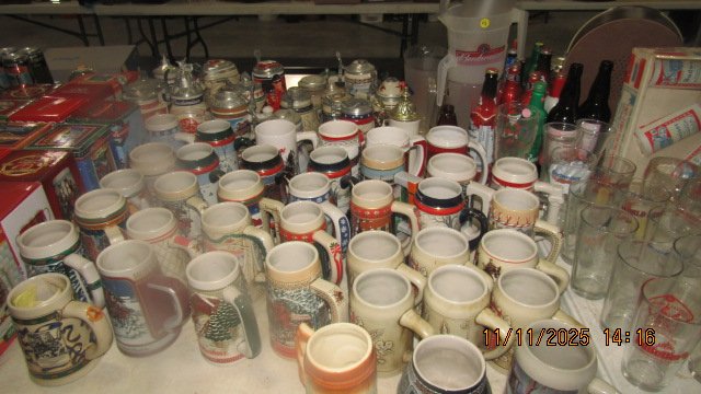 ANTIQUES, COLLECTIBLES, FURNITURE, TOOLS & HOUSEHOLD, 2001 DODGE HALF TON PICKUP; HUSQUAVARNA 22HP RIDING MOWER; 6X10 DOOLITTLE FLATBED TRAILER; 6×10 2020 CARGO TRAILER WITH SINGLE AXLE & RAMP DOOR; 1998 GMC SONOMA PICKUP; 2 PIECE SNAP ON TOOLBOX; LOTS OF HAND TOOLS; DEWALT MITER SAW & STAND; CHAINSAWS; WEEDEATERS; GENERATOR; CHEST FREEZER; REFRIGERATOR; ELECTRIC STOVE; WASHER & DRYER; BEER LIGHTS; BEER SIGNS; ANHEUSER BEER MUGS; CAST IRON SKILLETS; HALLMARK ORNAMENTS; FALSTAFF CONE TOP BEER CAN; SPORTS AFIELD GUN SAFE; AUTOGRAPHED SPORTS PICTURES; RICKENBACHER ACOUSTIC GUITAR; BLOW MOLD SANTAS; PAPER MACHE SANTA; 2 CERAMIC CHRISTMAS TREES; SHINY BRIGHT ORNAMENTS; LARGE AMOUNT OF VINTAGE CHRISTMAS DECORATIONS; PYREX BOWLS; SEVERAL HENS ON NEST; MODERN FURNITURE.