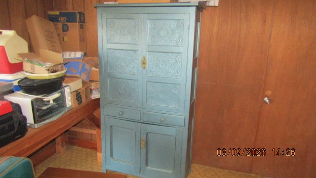 10 Tin Pie Safe, 1960s Car Models, Wester Stoneware Co 5 Gallon Crock, Plant 3 Crock Jug, RCA Victor Television, Lanterns, US Brewing Company Chicago Il. Advertising Wooden Box, Gold Metal Explosives Advertising Wooden Box, Several Wooden Boxes, TV/Radio Tubes, Advertisement Clock, Rocking Chair, Large Shot Glass Collection, Collection of State Of Missouri Books, Missouri History Books, World Books Century Book of Facts, Time Life Books, Kenmore Washer and Dryer, Acorn 180 Curved Stair Lift, Kirby Vacuums, Crosby Refrigerator, Whirlpool Microwave, Kenwood Stereo, LG HD TV, Dual Reclining Sofa, 3 Piece Oak Entertainment / Bookshelf Unit, Oak Dinette Set, Wooden Desk, 6 Drawer Oak Chest, Oak Dresser with Beveled Mirror, (2) 5 Drawer Chest of Drawers, (2) Queen Size Adjustable Beds, Power Leather Recliner, 3 Piece Wicker Livingroom Set (Sofa, Chair and Footrest).