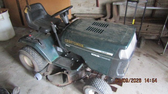 DAYTON Tradesman 12”/10” Tilting Arbor Table Saw Model 3Z994, DEWALT 9” Radial Arm Saw Model MBF-230, SENCO – PA10/10 Air Compressor, DELTA – 10” Drill Press Model DP200, 1” Belt Sander, Hollow Chisel Mortiser Model 14-650, Sander with Stand, Tenoning Jig Model 34-182, Variable Speed Grinder, POWERMATIC – 10” Tilting Arbor Saw, Dust Collector Model O73, SHOP SMITH Joiner, Lath and Table Saw, Band Saw with Accessories, .5 Amp Plainer Model PL-5010, Shaping and Drum Sanding, FOLEY BELSAW Model 984 Planer / Molder – 12” 220 Volt, JET SPENDAL SHAPER 220 Volt, OMNIJIG Dovetail Machine Model 7116, DELTA 220 Volt Sander, 10” Compound Miter Saw Model 36-220 Type 2.Coin Master Metal Detector, Metal Filing Cabinet, Werner Adjustable Ladder, Werner 12 ft and 10 ft ladders, Wooden Step Ladders, Master Built Electric Smoker, Char Broil Grill, Char Broil Smoker, Log Chain, Lumber (walnut, tongue and grove pine), Wooden Barrel, Push Mower, Craftsman 15.5 HP 42” Deck Hydrostat Riding Mower, Craftsman LT 2000 18.5 HP 42” Cut, Craftsman Lawn Cart, Butcher Block, New Uninstalled Windows, New Larson 36” White Screen Door, Miscellaneous Garden Tools, Portable Air Compressor, Backpack Sprayer, Craftsman 175 PSI 25 Gallon Air Compressor, Metal Tool Boxes, 2 Ton Cherry Picker.