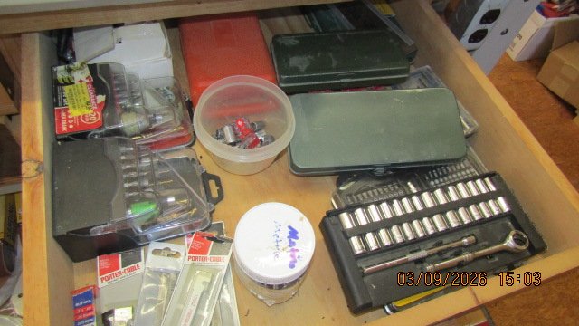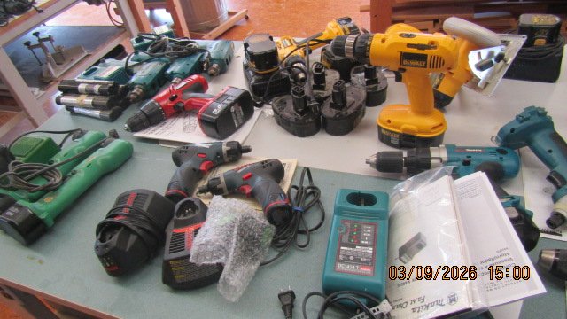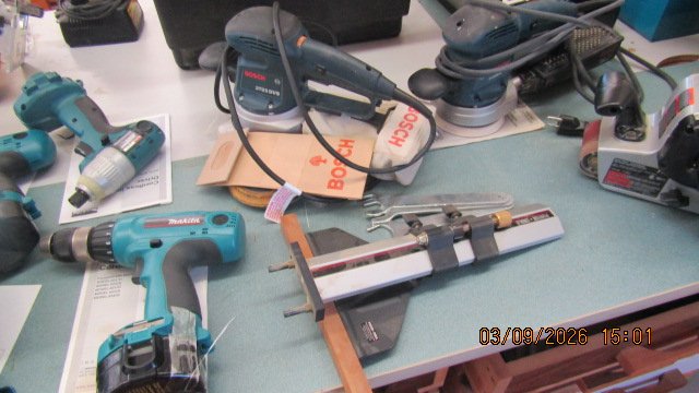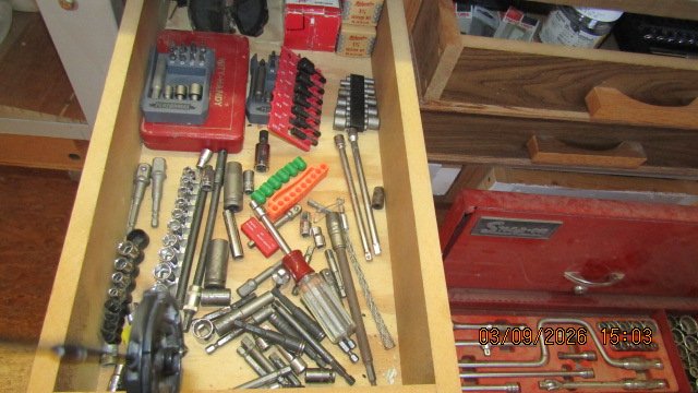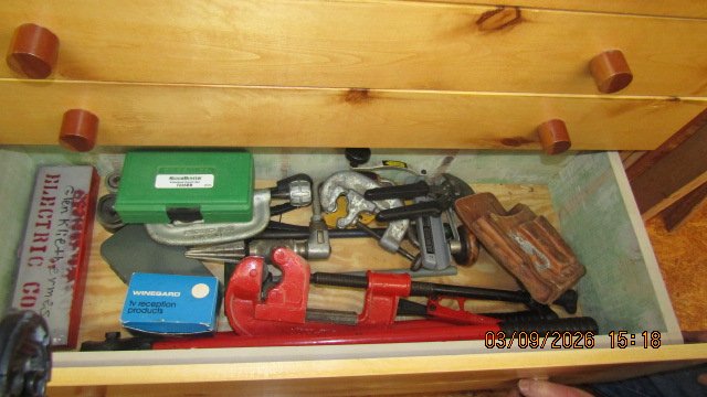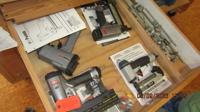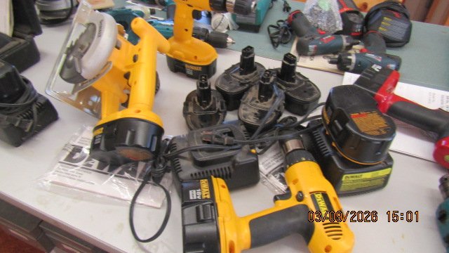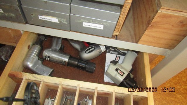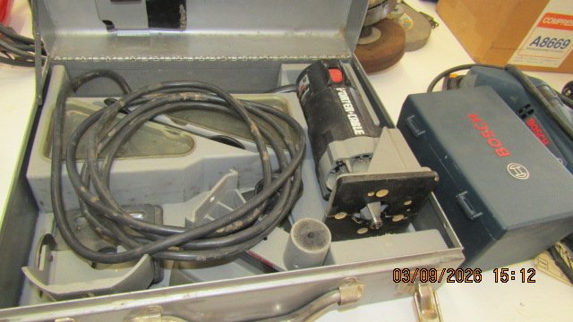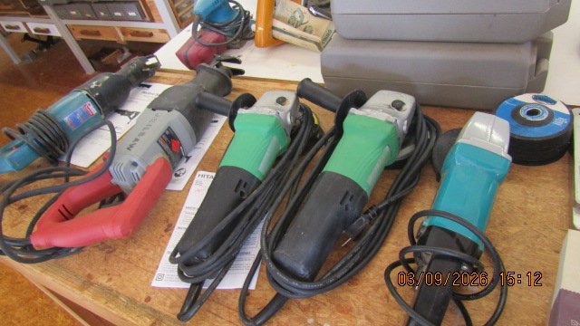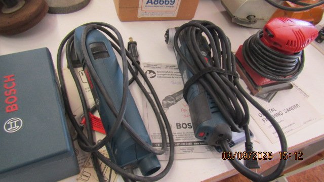 SNAP-ON 3 Drawer Toolbox, 3/8 Socket Set, Wrench Set, DEWALT – 18 Volt Drills, Circular Saw, Jig Saw, Biscuit Joiner, MILWAUKEE – Heavy Duty Right Angel Drill, Sawzall, MAKITA – 9.6 Volt Drill Set, 14.4 Volt Drill Set, Light, Impact, Sawzall, Sander, BOSCH – Lithium 12 Volt Impact, Hand Plainer, Air Nailer, (2) Orbital Sanders, Multi Tool Oscillating Saw, Corner Sander, HITACHI – 9.6 Angle Drill, PORTER CABLE – Belt Sander, Jig Saw, Profile Sander, Circular 6” Saw, Router, CHICAGO – Saw Built Sharpener, SENCO – Air Nailer, PC 10/10 Air Compressor, AEG Rotary Hammer Drill Model PHE20RL-N, SKILL – Worm Drive Saw, Drill Bits, Torque Wrench, Dremel Tool, (2) Drill Bit Sharpeners, Roto Zip, (2) Shop Vacs, Woodworking Clamps, A Lot of Bar Clamps of Various Sizes, Hammers, Leather Tool Belts, Custom Made Tool Cabinets.